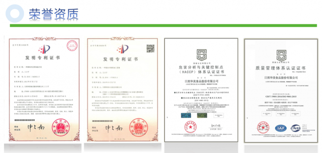 日照华美食品有限公司成立于2002年5月8日,位于山东省日照市岚山区,是一家农产品种植、 加工生产、自营出口企业。在发展过程中,公司不断整合资源优势,逐渐专注于辣根和WASABI产品的生产和销售,并力求做到专业、专一。2013年7月12日,公司通过山东省食品生产许可认证,是省内首家通过SC食品生产许可认证的辣根专业化生产企业。