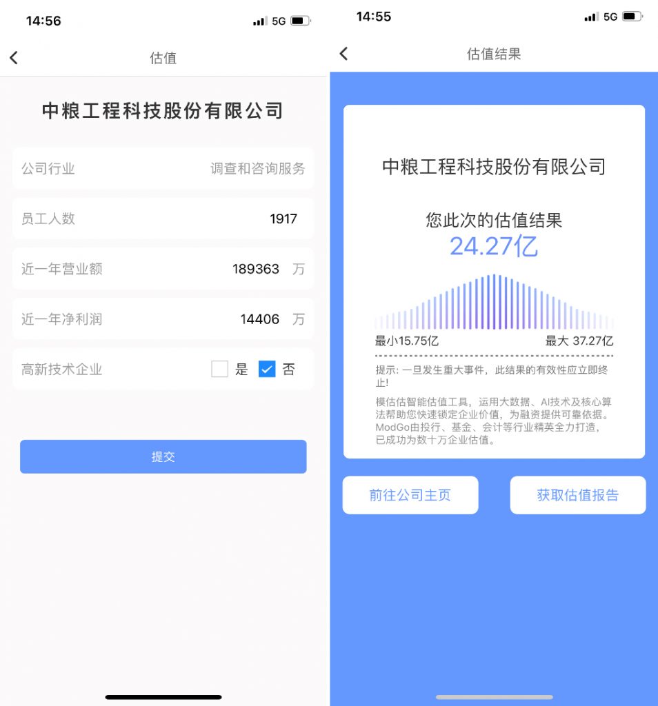 我们借助模估估对中粮工科进行估值,本次估值用到收入法、等价期权法、市场法、深度学习法。