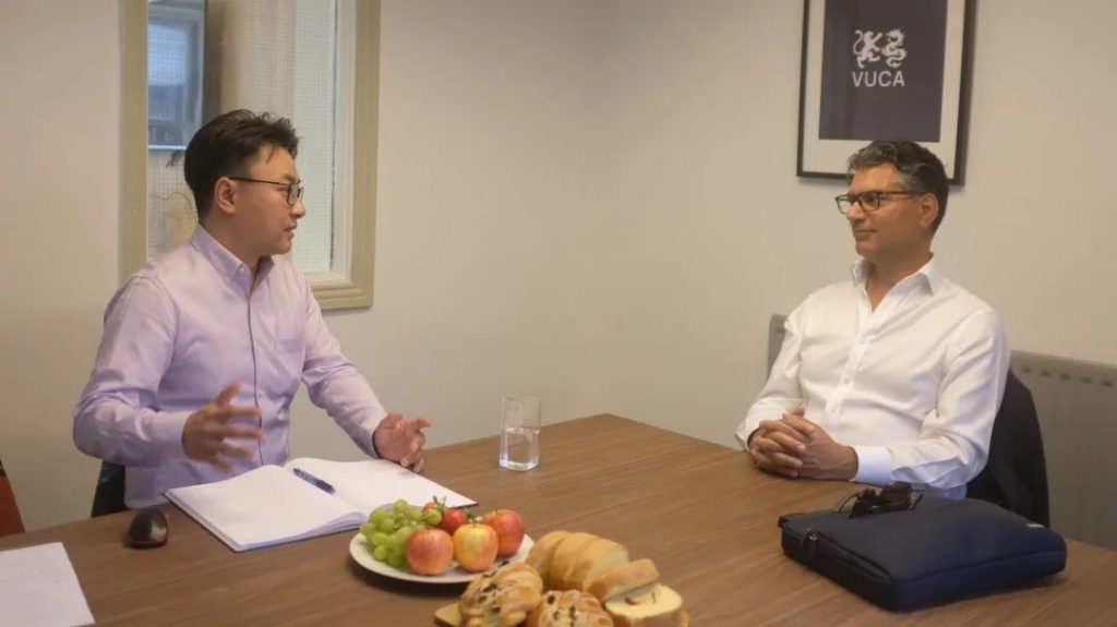 2022年6月23日 Prospect Capital首席执行官 John Behar先生拜访英国VUCA Board办公室,英国畅发董事卞立人先生、VUCA Board大中华区事务专员闫百仪女士共同接待,并带领John Behar先生参观了VUCA Board英国办公室,详细介绍了英国的团队以及业务情况。