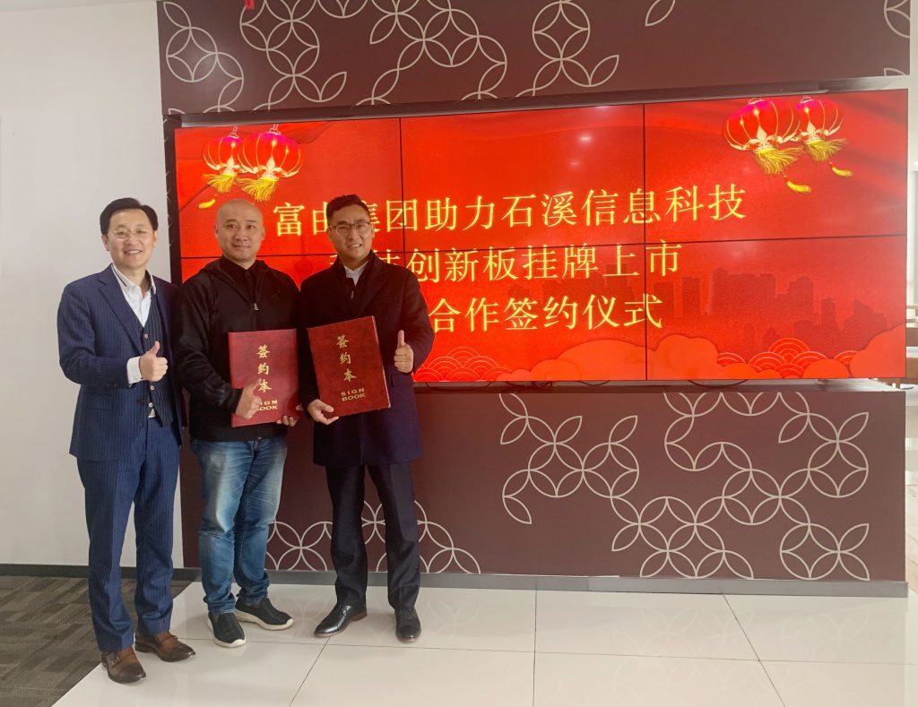 2020年3月27日星期五,富由集团和石溪科技举行签署战略合作签约仪式。本次签约主要围绕富由集团为石溪科技在上海股交中心科技创新板挂牌服务进行全面辅导及赋能展开,并在后期登陆主板持续提供一站式辅导与服务。