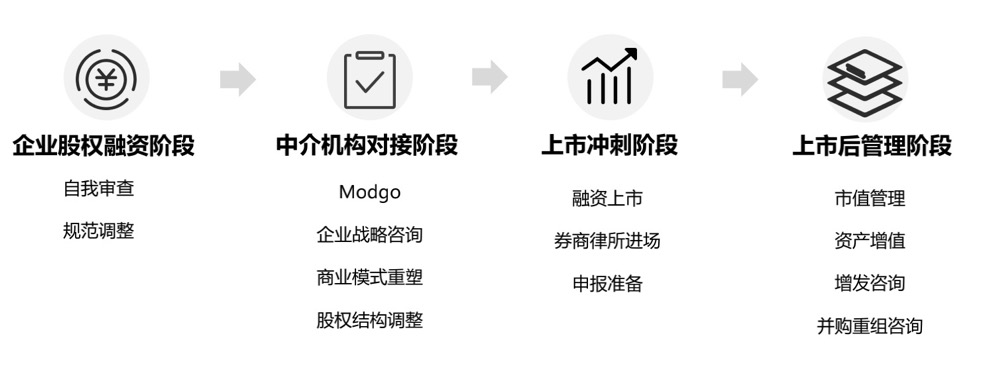 围绕中小企业在不同发展阶段所面临的发展瓶颈、痛点难点和诉求,围绕“企业所处行业发展趋势、商业模式是否创新、企业估值、未来企业发展及市值走势预判、股权结构合理性、股权激励计划、融资需求、组织结构完善程度、公司治理规范化、企业信息化程度以及企业进入资本市场目标和计划等模块进行综合分析评估,针对性定制的一套解决方案。
