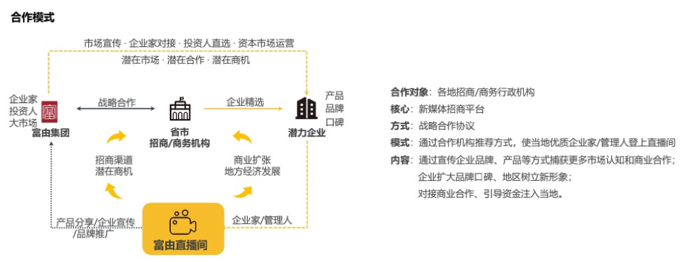 任何企业在进行融资时,无论面对专业投资人还是普通投资者,或者公司高管及内部员工,都需要阐述自身企业发展战略、愿景及商业模式,只有让别人信服,才可能实现融资目标。富由金融直播间的推出,既是围绕企业和企业家品牌形象进行包装塑造,并整合多家媒体资源平台进行传播推广。